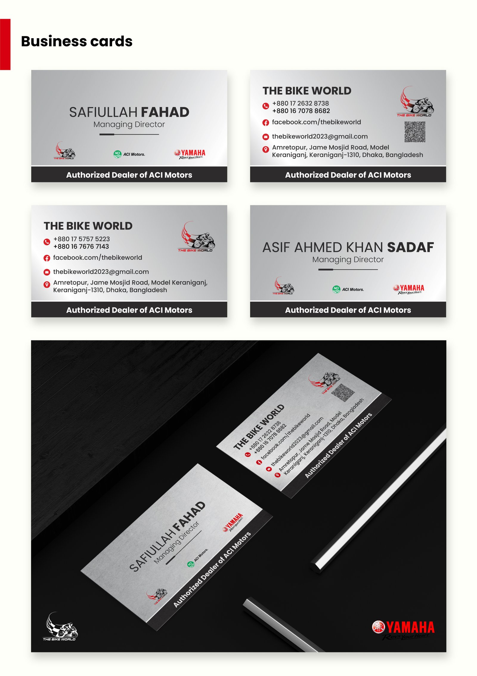 For The Bike World by Yamaha, we delivered a complete corporate branding solution that reflects trust, performance, and professionalism. The project included logo design and essential brand stationery such as letterhead, invoices, delivery and money receipts, and business cards. Each element was designed to maintain brand consistency while aligning with Yamaha’s bold and reliable identity across all customer touchpoints.