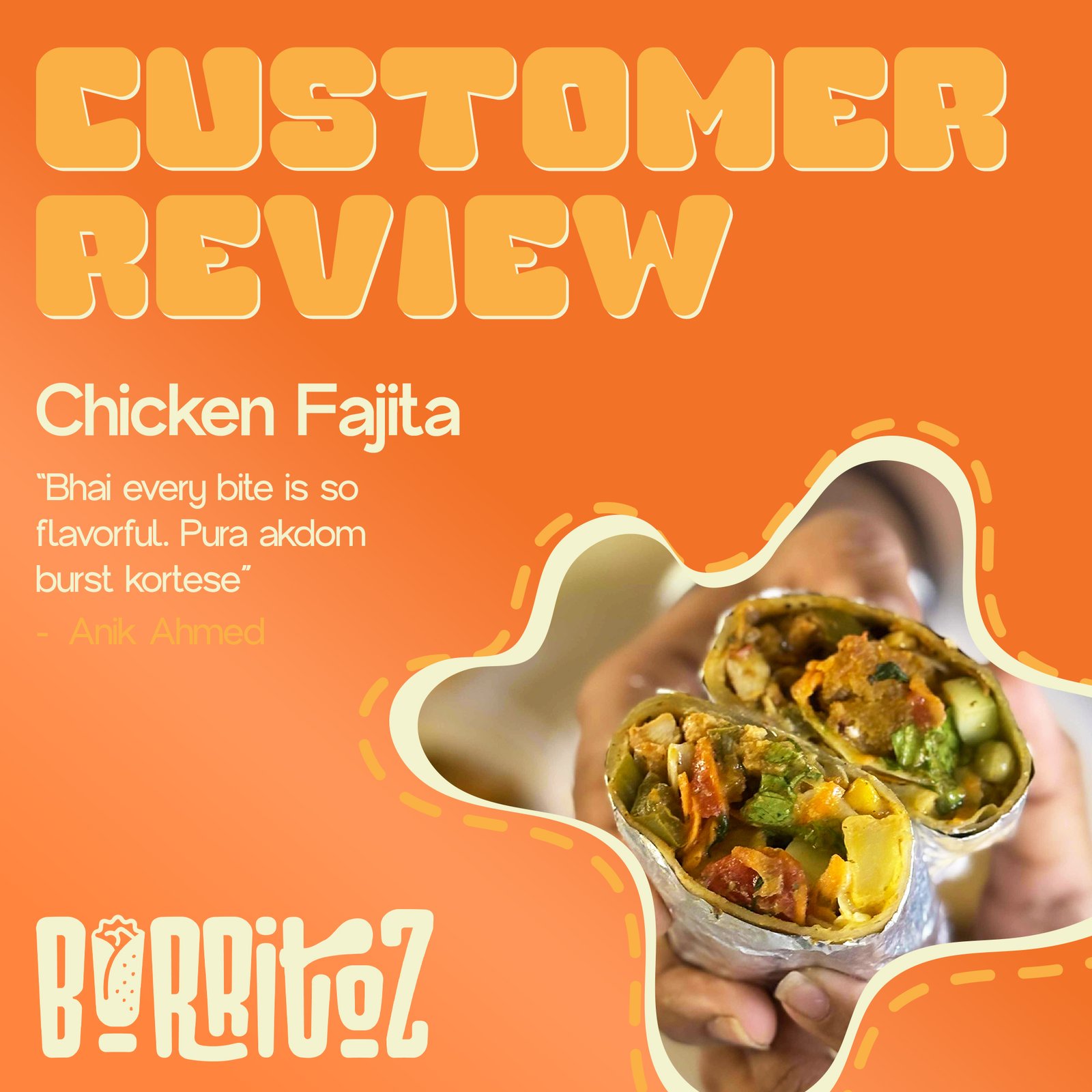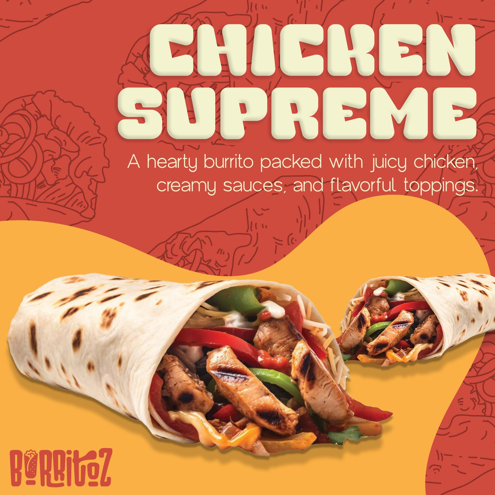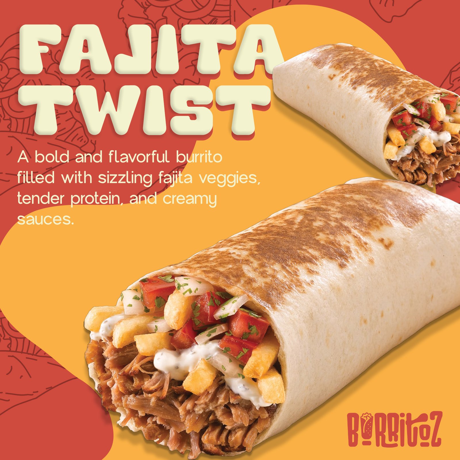 For Burritoz, a food brand dedicated to serving delicious, flavor-packed burritos, we designed eye-catching social media posts that feel fresh, bold, and appetizing. The creatives were focused on highlighting the product’s taste and energy while keeping the visuals fun and scroll-stopping—helping the brand connect with food lovers and build a strong presence across social platforms.